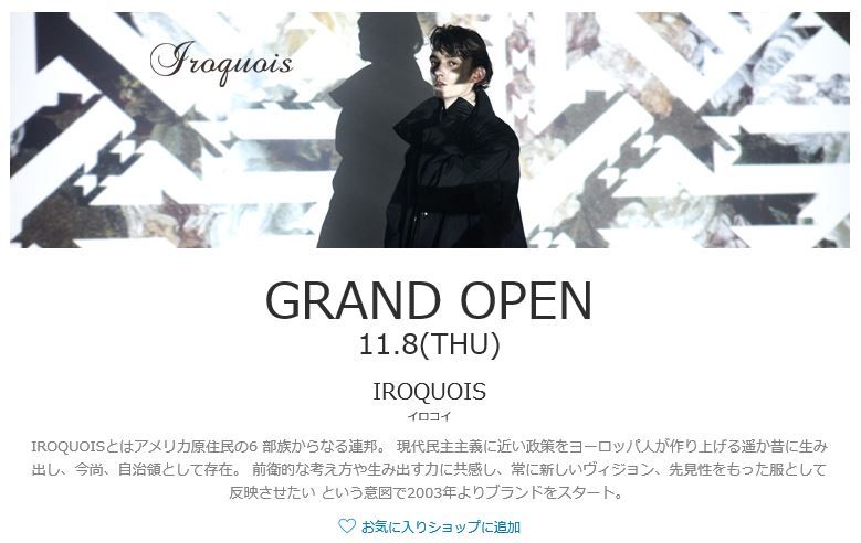 11/8 11:00~ IROQUOIS@ZOZOTOWN GRAND OPEN
